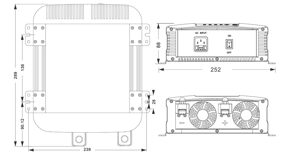 1. Omnes parametri non nominatim metiuntur 230VAC initus, æstimatus oneris et 25℃ temperatus ambientis.