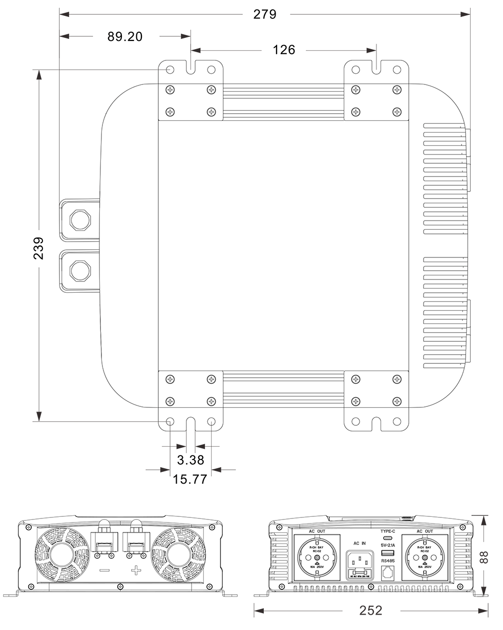 Mechanica Drawings:(279x252x88mm mm)
