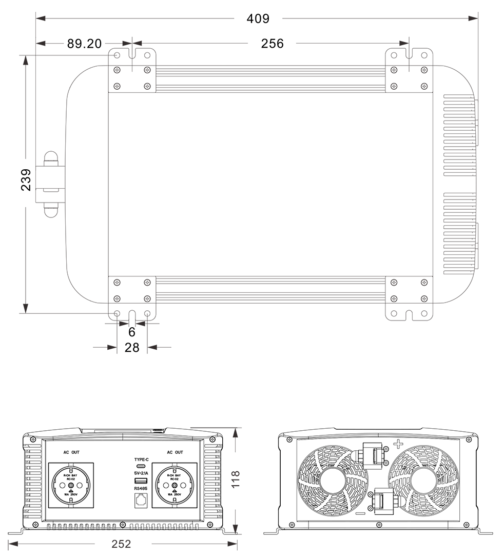 Mechanica Drawings:(409x252x118mm)